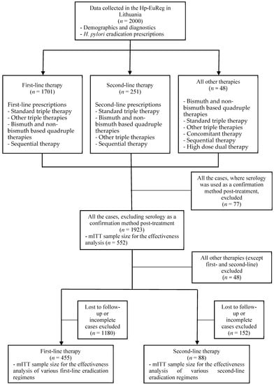 Therefore, the aim of this sub-study was to evaluate the H. pylori diagnostics, treatment prescriptions, their effectiveness and adherence to Maastricht V/Florence consensus report during the years 2013–2020 in Lithuania.