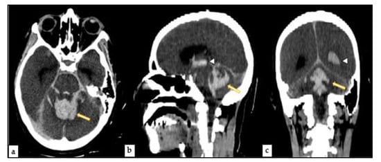 - Rosen, R.S.; Armbrustmacher, V.; Sampson, B.A. Spontaneous cerebellar hemorrhage in children. J. Forensic Sci. 2003, 48, 177–179. [Google Scholar] [CrossRef] [PubMed]