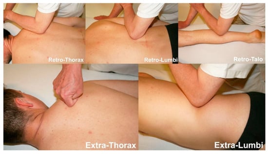 The choice of treatment was one session of Fascial Manipulation®-Stecco method®. This method was chosen because it is based on the anatomical continuity of the fascia and the interaction of tensional lines of force through the fascial system. The application of these principles allows for treatment to be performed at a distance from the painful region, thereby avoiding irritation of locally inflamed tissue while restoring an overall tensional balance. The method entails an initial complete anamnesis, followed by specific movement and palpatory tests and it emphasizes a clinically reasoned biomechanical assessment of the fascial system to understand its role in movement system dysfunctions [,]. The physiotherapist then seeks out altered or densified points by manually palpating small codified areas of the deep muscular fascia, known as Centers of Coordination and Centers of Fusion, located within the subjects’ muscular fascia. These small areas are commonly at a distance from reported areas of pain because they are located where tensional vectors are presumed to intersect. Based on Fascial Manipulation® protocol and the integrated biomechanical model applied in this method [], the therapist then uses their elbow or knuckle to manipulate a select combination of these altered points until solution of the densification is achieved. It has been suggested that the friction produced by the manipulation generates localized heat and that, due to the thermosensitive characteristics of the fasciae, this heat facilitates the passage of hyaluronan within the extracellular matrix (ground substance) from a densified state to a more fluid state, restoring the gliding proprieties of the fasciae [,]. Several recent studies have reported that appropriate release of these codified areas appears to result in pain reduction and improved functional and perceived well-being outcomes in low back pain patients [,,].