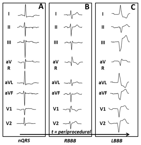 14. Surawicz, B.; Childers, R.; Deal, B.J.; Gettes, L.S.; Bailey, J.J.; Gorgels, A.; Hancock, E.W.; Josephson, M.; Kligfield, P.; Kors, J.A.; et al. AHA/ACCF/HRS recommendations for the standardization and interpretation of the electrocardiogram: Part III: Intraventricular conduction disturbances: A scientific statement from the American Heart Associ-ation Electrocardiography and Arrhythmias Committee, Council on Clinical Cardiology; the American College of Cardiology Foundation; and the Heart Rhythm Society. Endorsed by the International Society for Computerized Electrocardiology. J. Am. Coll. Cardiol. 2009, 53, 976–981. [Google Scholar] [PubMed] [Green Version]