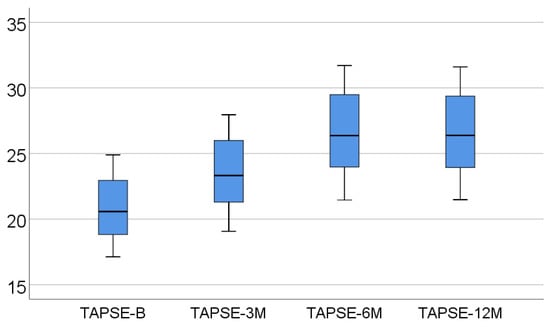 Box-plot representation of TAPSE evolution.