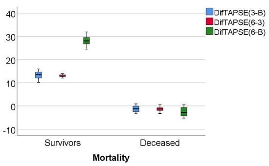 Box-plot representation of TAPSE evolution in comparison with mortality.