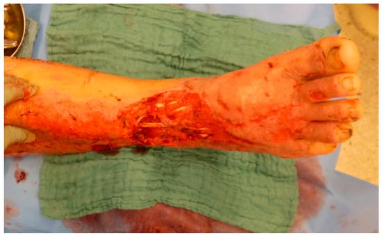 - Aguilera-Saez, J.; Lopez-Masramon, B.; Collado, J.M.; Monte-Soldado, A.; Rivas-Nicolls, D.; Serracanta, J.; Barret, J.P. Severely damaged lower limb salvage in a critically ill burned patient. Lessons learned. Int. J. Burns Trauma 2020, 10, 191–200. [Google Scholar] [PubMed]