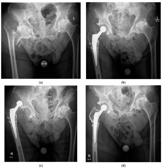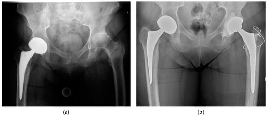 - Çiloğlu, O.; Karaali, E.; Kuşvuran Özkan, A.; Ekiz, T. Distally-fixed non-modular monoblock fluted long-stem hemiarthroplasty versus proximal femoral nailing for elderly patients with an osteoporotic intertrochanteric fracture: A retrospective comparative study. Hip Int. 2020. [Google Scholar] [CrossRef]