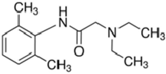 Lidocaine, also known as lignocaine, is a class Ib antidysrhythmic and local amino amide-based anesthetic that has been on the market since 1948 (Figure 1) [6,7]. Due to its superior safety profile as compared to other LA agents, it was quickly adopted. It can also be used to treat acute and chronic pain as an adjuvant analgesic [8,9,10]. It is widely used to relieve pain after a minor surgery or invasive procedures like biopsies, minor excisions, or dental surgery. However, as lidocaine can be used in different ways, i.e., by injection, inhalation, or as a topical agent to provide anesthesia to the same patients, it is essential to keep records of the total dose given to avoid its systemic toxicity. Lidocaine should not be used in patients with confirmed allergic hypersensitivity to amide-based LA. Due to the increase in the number of over-the-counter (OTC) drugs containing topical amide anesthetics such as lidocaine, the incidence of allergic contact dermatitis (ACD) to LA is rising. The ACD to LA is common, with an incidence of 2.4%, in which 32% of cases are linked to lidocaine [11]. The incidence of lidocaine allergy in 17 subjects out of 100 dentists (assumed patients) was detected, in which type I hypersensitivity was diagnosed in 13 cases, and four subjects had an IgE-independent allergy [12]. Sixteen cases of allergy contact dermatitis and delayed hypersensitivity to lidocaine were reported by Antoine et al. [13]. While local anesthetics have not been linked to serum enzyme elevation, they have been reported as potential causes of clinically evident liver injury when given as continuous infusions or repeated injections. Poisoning with the parenteral form of lidocaine is the most well-known, although poisoning with a topical spray formulation is also possible [14]. It has undesirable effects on the cardiovascular system (CVS) and the central nervous systems (CNS) once ingested in large amounts [15,16,17]. Toxicity to regional nerves and muscles is thought to be caused by long-term use of high drug concentrations, by the presence of preservatives in the amide-based LA solution such as lidocaine, or both [18,19]. During regional anesthesia, an inadvertent intravascular injection (primarily into the neck) of lidocaine causes severe cardiotoxicity such as hypotension, atrioventricular heart block, idioventricular rhythms, and life-threatening arrhythmias such as ventricular tachycardia and fibrillation, which are usually the first signs of LA toxicity [20]. A case of death of a 32-year-old male from a lethal dose of lidocaine was reported by Kalin et al. [21]. A case of death of a 76-year-old man with heart disease as a result of an excessive dose of lidocaine was reported [22]. A study regarding acute toxicity of lidocaine with a mortality rate of 10% was reported [7].
