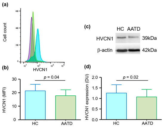 3.1. Cell Membrane Expression of HVCN1 in Neutrophils of AATD Is Decreased