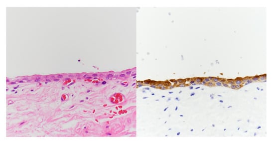 - Maluf, H.M.; King, M.E.; DeLuca, F.R.; Navarro, J.; Talerman, A.; Young, R.H. Giant multilocular prostatic cystadenoma: A distinctive lesion of the retroperitoneum in men. A report of two cases. Am. J. Surg. Pathol. 1991, 15, 131–135. [Google Scholar] [CrossRef] [PubMed]