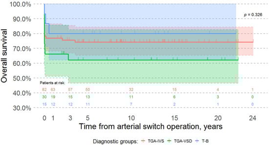 There was no significant difference in the overall survival of patients with different forms of transposition of the great arteries (Log-rank test p-value = 0.326) (Figure 2).