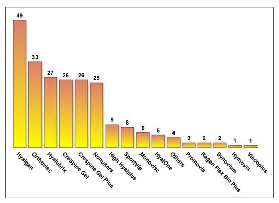 The frequency of utilizing hyaluronic acid products for osteoarthritis.