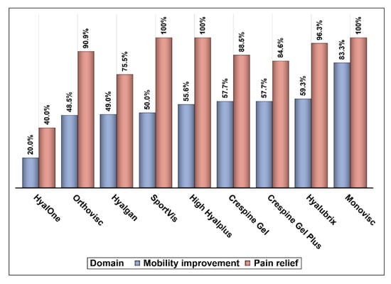 - The following are some examples of hyaluronic acid injections that are used in the management of osteoarthritis. Please let us know whether you are using any of them by checking the box and let us know whether the hyaluronic acid products that you are using improve mobility and/or relieve pain by checking the appropriate boxes. Please note that you can check multiple boxes.
