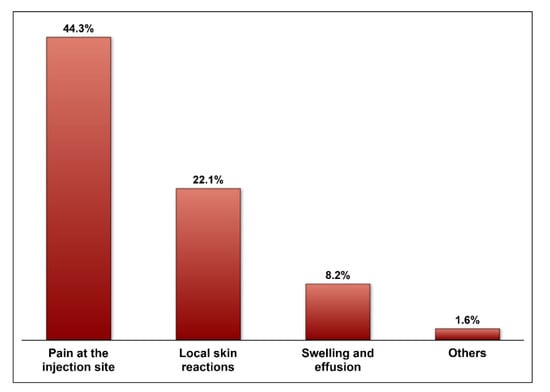 - Which of the following side effects have you noticed in patients treated with hyaluronic acid injections for osteoarthritis?
