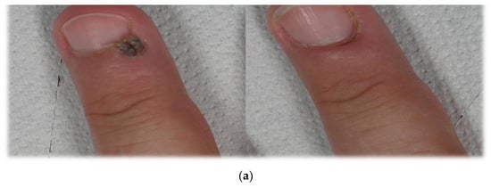 - Kopera, D. Verrucae vulgares: Flashlamp-pumped pulsed dye laser treatment in 134 patients. Int. J. Dermatol. 2003, 42, 905–908. [Google Scholar] [CrossRef] [PubMed]