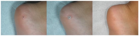 - Boroujeni, N.H.; Handjani, F.; Saki, N. CO2 laser treatment for plantar warts in children: A case series. Dermatol. Ther. 2020, 33, e13414. [Google Scholar] [CrossRef] [PubMed]