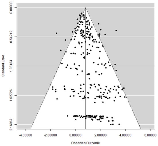 A funnel plot did not show a clear asymmetry (Figure 7), indicating the possible absence of publication bias.