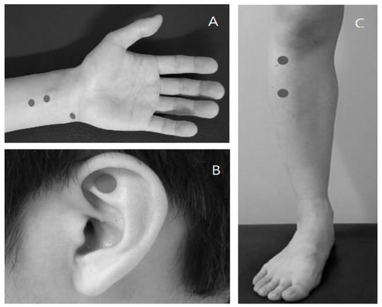 - World Health Organization. WHO Standard Acupuncture Point Locations in the Western Pacific Region; World Health Organization: Manila, Philippines, 2008. [Google Scholar]