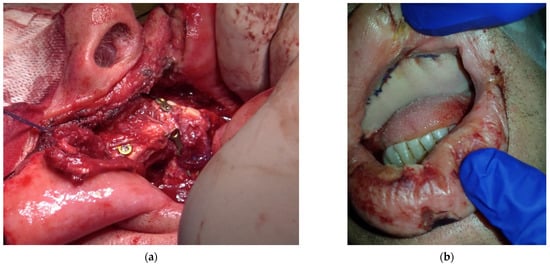 - Triana, R.J.; Uglesic, V.; Virag, M.; Varga, S.G.; Knezevic, P.; Milenovic, A.; Aljinovic, N.; Murakami, C.S.; Futran, N.D. Microvascular free flap reconstructive options in patients with partial and total maxillectomy defects. Arch. Facial Plast. Surg. 2000, 2, 91–101. [Google Scholar] [CrossRef]