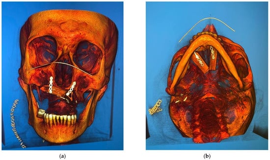 - Pollice, P.A.; Frodel, J.L. Secondary reconstruction of upper midface and orbit after total maxillectomy. Arch. Otolaryngol. Head Neck Surg. 1998, 124, 802–808. [Google Scholar] [CrossRef] [PubMed]