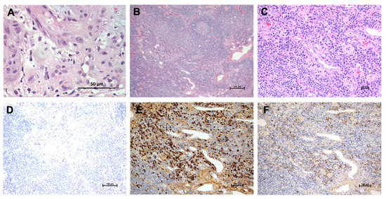 - Frizzera, G.P.G.J.; Banks, P.M.; Massarelli, G.; Rosai, J. A systemic lymphoproliferative disorder with morphologic features of Castleman’s disease. Pathological findings in 15 patients. Am. J. Surg. Pathol. 1983, 7, 211–231. [Google Scholar] [CrossRef] [PubMed]