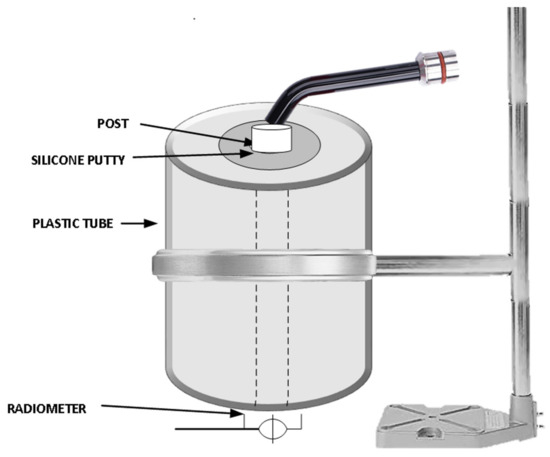 - Szesz, A.; Cuadros-Sanchez, J.; Hass, V.; da Cruz, G.K.; Arrais, C.A.; Reis, A.; Loguercio, A.D. Influence of delivered radiant exposure values on bonding of fiber posts to root canals. J. Adhes. Dent. 2015, 17, 181–188. [Google Scholar] [PubMed]