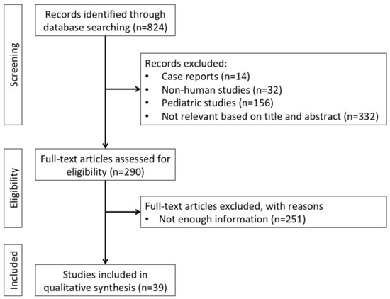 We performed systematic research to identify epidemiology, clinical presentation, diagnosis, staging, prognosis, treatment options, and follow-up strategies for VUR in adult KT recipients. We used the electronic databases PubMed and Embase. No time limits were applied, but we included studies published before 30 September 2021. We chose the following MeSH terms for the research through PubMed: “kidney”, “transplantation”, and “vesicoureteral reflux”. We used the following string to search through Embase: (‘transplantation’/exp AND ‘kidney’/exp AND ‘vesicoureteral reflux’/exp). Inclusion criteria were: all kinds of articles, including conference papers, but excluding case reports, all languages. Exclusion criteria were: species (non-human), age (paediatric recipients), and type of article (case reports). This topic has rarely been met with standard screening and reporting criteria, which prevented us from performing meta-analyses. As a consequence, we also excluded 251 articles because they were not amenable to a meaningful qualitative analysis. The selection process is displayed in Figure 1.