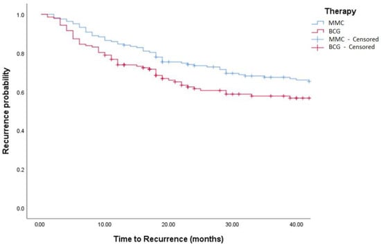 The adjuvant intravesical MMC was administered according to the Southwest Oncology Group (SWOG) regimen: induction with a weekly injection per 6 weeks + maintenance with a monthly injection up to 12 months. Similarly, the BCG scheme included a weekly injection up to 6 weeks and a maintenance every 3–6 months up to 36 months [17].