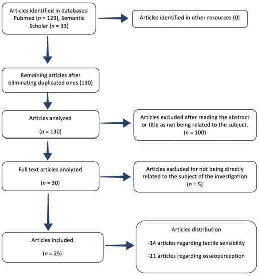 Twenty-five articles were chosen among all the literature reviewed so as to analyze the influence of osseoperception on an improved tactile sensibility and its related values in every prosthetic rehabilitation or natural dentition.