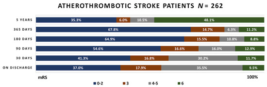 Functional outcome in the atherothrombotic stroke patient group. mRS—modified Rankin scale.