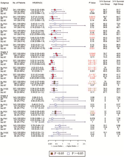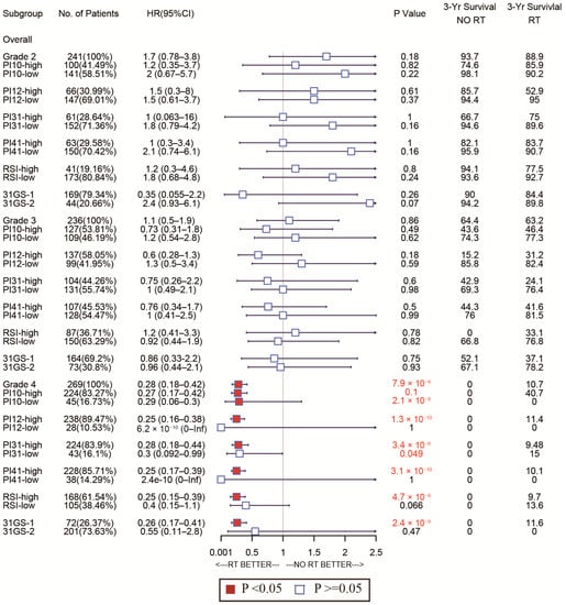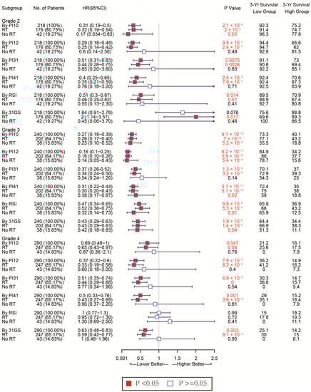 3.1. Validation of the Predictive Capacity for RSI and 31-Gene Signatures