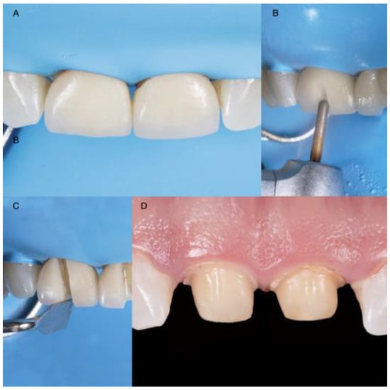 - Jurado, C.; Watanabe, H.; Tinoco, J.V.; Valenzuela, H.U.; Perez, G.G.; Tsujimoto, A. A conservative approach to ceramic veneers: A case report. Oper. Dent. 2020, 45, 229–234. [Google Scholar] [CrossRef] [PubMed]