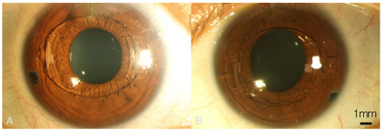 - Kim, M.; Kim, J.K.; Lee, H.K. Corneal endothelial decompensation after iris-claw phakic intraocular lens implantation. J. Cataract Refract. Surg. 2008, 34, 517–519. [Google Scholar] [CrossRef]