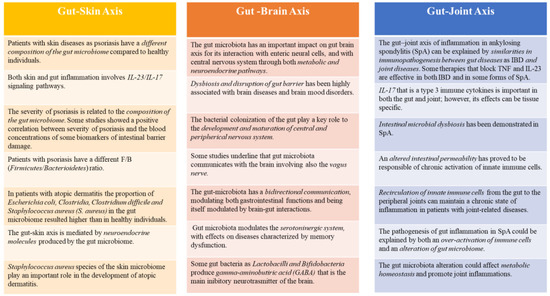 Gut-Skin, Gut-Brain, Gut-Joint Axis and the role of fecal calprotectin. Faecal calprotectin, as a marker of gut inflammation, can be very useful for clinicians in both intestinal and non-intestinal diseases, due to the link between gut and other systems as skin, brain, joints.