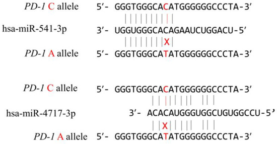 - Zhang, G.; Li, Z.; Zhu, Q.; Li, F.; Yang, C.; Han, Q.; Lv, Y.; Zhou, Z.; Liu, Z. MicroRNA-4717 differentially interacts with its polymorphic target in the PD1 3′ untranslated region: A mechanism for regulating PD-1 expression and function in HBV-associated liver diseases. Oncotarget 2015, 6, 18933. [Google Scholar] [CrossRef]