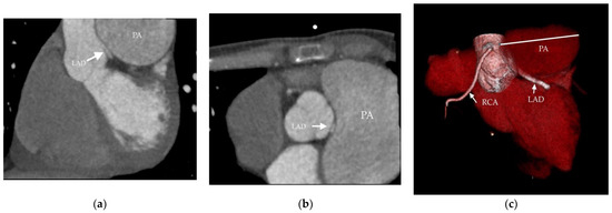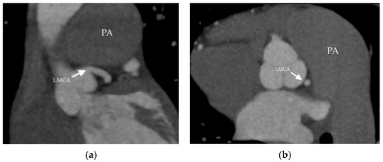 - Akbal, O.Y.; Kaymaz, C.; Tanboga, I.H.; Hakgor, A.; Yilmaz, F.; Turkday, S.; Dogan, C.; Tanyeri, S.; Demir, D.; Bayram, Z.; et al. Extrinsic Compression of Left Main Coronary Artery by Aneurysmal Pulmonary Artery in Severe Pulmonary Hypertension: Its Correlates, Clinical Impact, and Management Strategies. Eur. Heart J. Cardiovasc. Imaging 2018, 19, 1302–1308. [Google Scholar] [CrossRef]