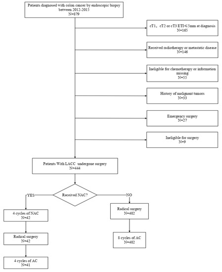 APA StyleZeng, W., Liu, Y., Wang, C., Yang, C., Lin, S., & Li, W. (2022). Efficacy and Safety of Neoadjuvant Chemotherapy Combined with Adjuvant Chemotherapy for Locally Advanced Colon Cancer: A Propensity Score-Matching Analysis. Medicina, 58(11), 1505. https://doi.org/10.3390/medicina58111505
