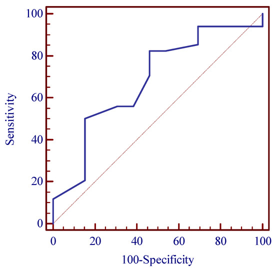 Receiver operating characteristic (ROC) curve analysis was conducted to describe the predictive value of strain parameters; the correspondent area under the curve with its 95% confidence interval was calculated.