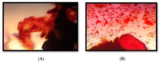 Alizarin Red S staining of mineralized calcium deposition. (A) 14 days of cultured PDLSCs with xenograft bone block in osteogenic growth media, (B) 21 days of cultured PDLSCs with xenograft bone block in osteogenic growth media.