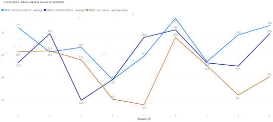 The average values of the 3 analyzed variables (Y axis) in clusters 1–9 (X axis) are presented in Figure 5.
