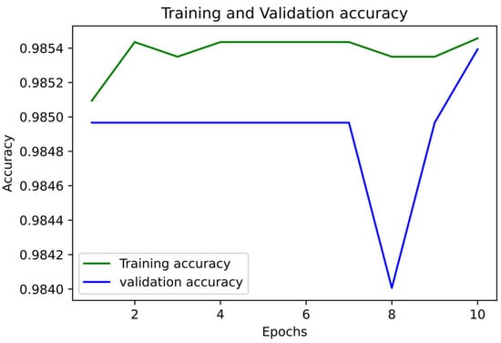 Figure 5 and Figure 6 show the accuracy and LoS plot for mortality prediction by using a neural network model. We developed a neural network to produce the accuracy and LoS plots on a training dataset. We obtained both accuracy and LoS plot values to evaluate the performance of the classification of subjects on each iteration. However, accuracy is a parameter that may present any bias in the data. Therefore, to confirm that the classification of subjects was statistically significant, we also estimate other parameter metrics. The LoS plot in Figure 5 shows that the model is relatively good since the dataset is unbalanced; however, the model needs to learn more.