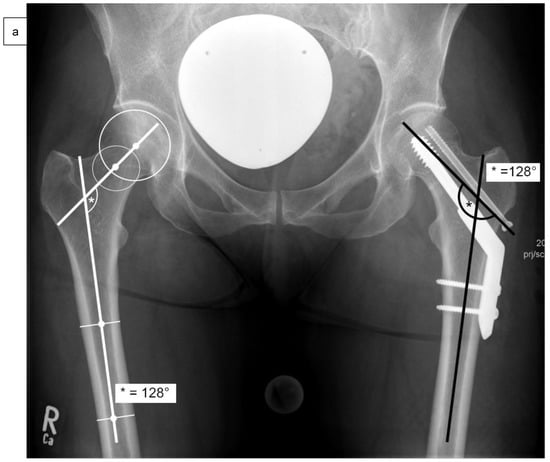 - Min, B.-W.; Bae, K.-C.; Kang, C.-H.; Song, K.S.; Kim, S.-Y.; Won, Y.-Y. Valgus intertrochanteric osteotomy for non-union of femoral neck fracture. Injury 2006, 37, 786–790. [Google Scholar] [CrossRef]