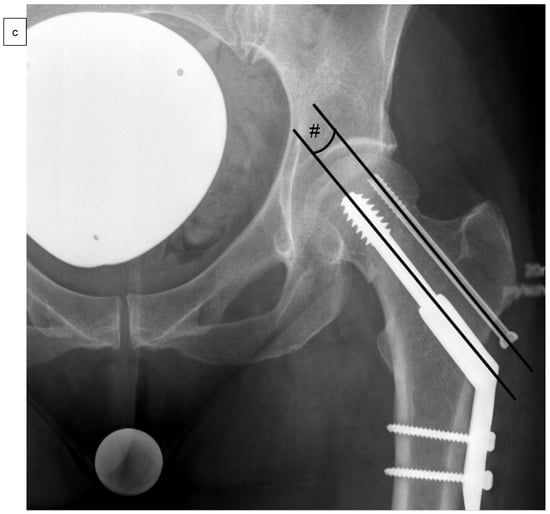 - Hente, R.; Maghsudi, M.; Nerlich, M. Reposition der Schenkelhalsfraktur des jüngeren Menschen. Valgus- oder anatomische Reposition? [Repositioning femoral neck fracture in younger patients. Valgus or anatomic reposition?]. Der Unfallchirurg 2001, 104, 1055–1060. (In German) [Google Scholar] [CrossRef]