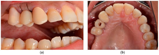 - Lin, W.-S.; Ercoli, C. A technique for indirect fabrication of an implant-supported, screw-retained, fixed provisional restoration in the esthetic zone. J. Prosthet. Dent. 2009, 102, 393–396. [Google Scholar] [CrossRef]