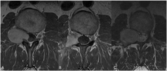 - Fehlings, M.G.; Nater, A.; Zamorano, J.J.; Tetreault, L.A.; Varga, P.P.; Gokaslan, Z.L.; Boriani, S.; Fisher, C.G.; Rhines, L.; Bettegowda, C.; et al. Risk Factors for Recurrence of Surgically Treated Conventional Spinal Schwannomas: Analysis of 169 Patients From a Multicenter International Database. Spine 2016, 41, 390–398. [Google Scholar] [CrossRef]
