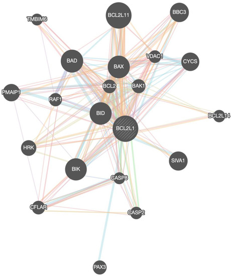 BCL-xL/BCL2L1 gene network (interactome) with all the associated genes.