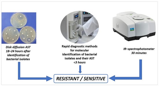 - Hrabak, J.; Chudackova, E.; Walkova, R. Matrix-assisted laser desorption ionization-time of flight (maldi-tof) mass spectrometry for detection of antibiotic resistance mechanisms: From research to routine diagnosis. Clin. Microbiol. Rev. 2013, 26, 103–114. [Google Scholar] [CrossRef] [PubMed]