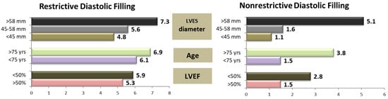 Moreover, patients with greater abnormalities in their LV filling pattern have a progressive increase in their risk of major cardiac events, and the stage of diastolic dysfunction correlates better than the LVEF with exercise impairment. In addition, in patients with heart failure, restrictive diastolic dysfunction is a stronger predictor of mortality than the LVEF [,,]. These data are consistent with our findings, further supporting the importance of evaluating LV diastolic function.