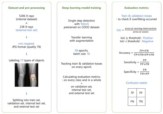 This study was approved by the Institutional Review Board (No. H-1801-061-915). The overall process of this study, from organizing dataset to evaluating the trained DL model, is summarized in Figure 1.