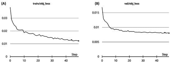 Train (A) & validation (B) losses of the Yolov5s model in the study. As the number of epochs increases, train losses always decrease. Validation losses decrease if the model is robust on new data. If the model is overfitted to the train set, validation losses would increase.