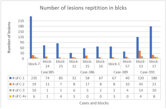 | Number of lesions in all slides | 958 | 154 | 53 | 29 | 1194 |