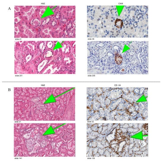 - Mandriota, S.J.; Turner, K.J.; Davies, D.R.; Murray, P.G.; Morgan, N.V.; Sowter, H.M.; Wykoff, C.C.; Maher, E.R.; Harris, A.L.; Ratcliffe, P.J.; et al. HIF activation identifies early lesions in VHL kidneys: Evidence for site-specific tumor suppressor function in the nephron. Cancer Cell 2002, 1, 459–468. [Google Scholar] [CrossRef]