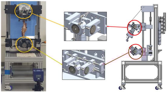 Eight fresh-frozen knees from eight men with a mean age of 79 years (range: 49–96 years) were used. The specimens were macroscopically intact and did not exhibit any gross pathology. The specimens were frozen at −20 °C until the evening before dissection, when they were thawed at room temperature. The lower extremity specimens were prepared by disarticulating the hip joint; high-resolution photographs were obtained to measure the preoperative hip-knee-ankle axis. The hip-knee-ankle axis showed a varus angle of 1.3 ± 3.2° (range: varus 4° to valgus 6°). The skin and subcutaneous tissue were dissected without damage to the extensor mechanism, retinaculum, knee capsule, or periarticular soft tissues. The quadriceps femoris was separated into the vastus medialis, rectus femoris/vastus intermedius, and vastus lateralis. The hamstring muscles were separated into the biceps femoris and semimembranosus/semitendinosus. The separated muscle branches were sutured using wire to connect the muscles and allow transmission of force. The femur was cut 30 cm proximal to the joint line; the tibia was cut 25 cm distal to the joint line. The ends of the femur and tibia were anatomically positioned and a cylindrical resin mold (Z-Grip, Evercoat, OH, USA) was created to mount the knee squatting simulator. Each specimen was securely mounted in its original axial alignment on a customized knee squatting simulator system (RNX & Corentec, Seoul, Republic of Korea) based on the original Oxford rig (Figure 2) []. This system, which is an opened loop control system with a motor type actuator with 7.5º/sec angular velocity, produced continuous flexion-extension motion while permitting physiological muscle loading and 6° of freedom positioning. The multiplane loading of the quadriceps and hamstring muscles was used to simulate physiological loading of the knee joint (vastus medialis 51 N, rectus femoris/ vastus intermedius 87 N, and vastus lateralis 77 N, biceps femoris 31 N, semimembranosus/ semitendinosus 54 N). The total loading was 300 N []. These loading parameters were based on the ratios of the physiological cross-sectional area of the muscles as described in a previous anatomical study []. The muscles were loaded in a multiplanar fashion as described in previous studies [,].